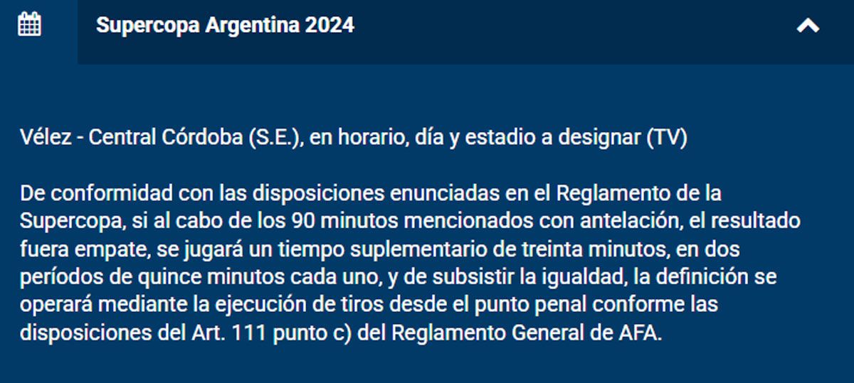 La Supercopa Argentina entre Central Córdoba y Vélez fue postergada. Aunque en un principio se había señalado el estadio Néstor Díaz Pérez, de Lanús, como sede del encuentro, la organización dio marcha atrás por cuestiones logísticas y dejó el partido sin programación confirmada.