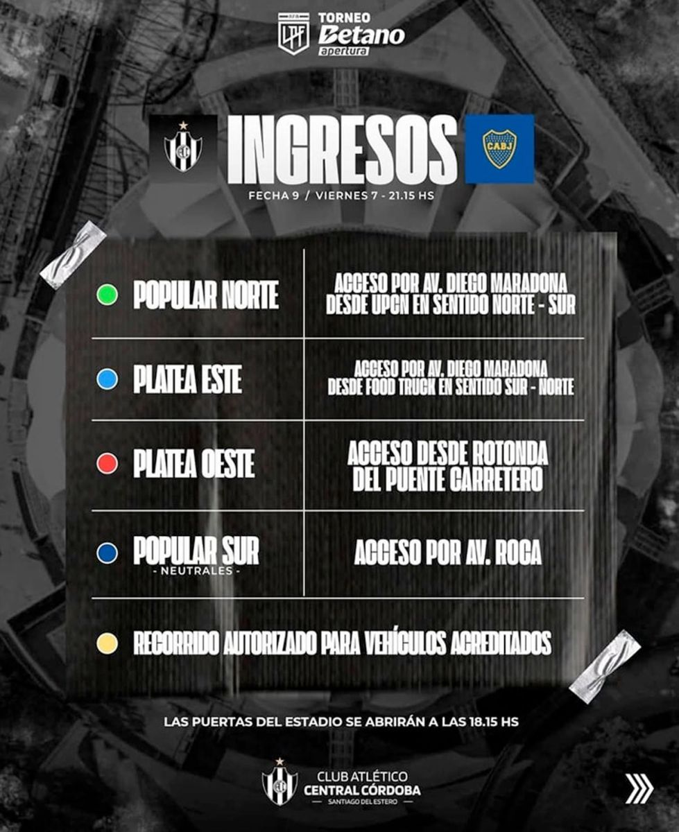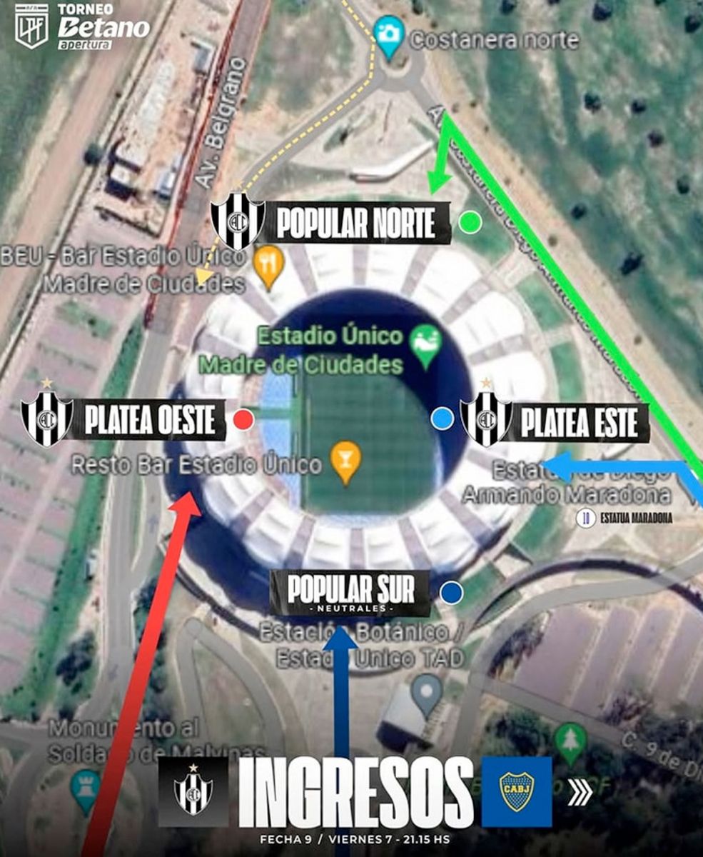 En ese sentido, se informó que los accesos al estadio serán de la siguiente manera: