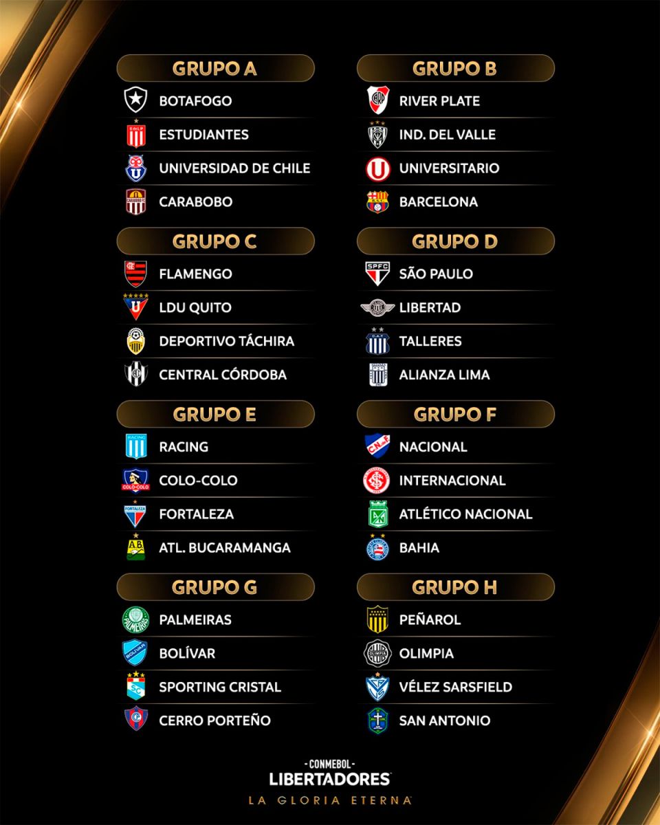 Por su parte, Estudiantes compartirá el Grupo A con el campeón Botafogo, Universidad de Chile (CHI) y Carabobo (VEN). Talleres fue sorteado en el Grupo D, donde enfrentará a San Pablo, Libertad y Alianza Lima. Vélez, en el Grupo H, tendrá duelos ante Peñarol (URU), Olimpia (PAR) y San Antonio Bulo Bulo (BOL).