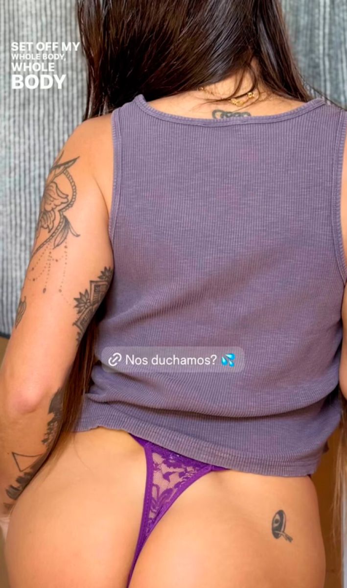 En otra ocasión, la conductora y modelo se fotografió de espaldas a la cámara, al lucir una microtanga de encaje lila que resaltó su figura. Con su estilo atrevido y su actitud sin filtros, volvió a dejar claro por qué es una de las figuras más comentadas en las redes sociales.