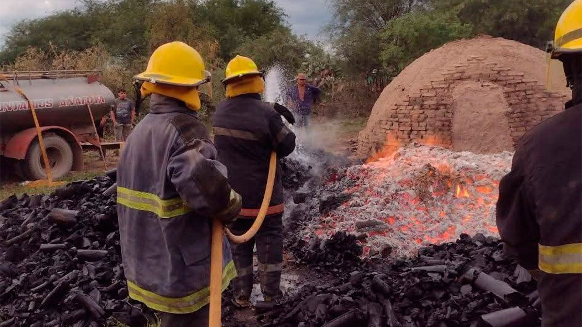 Un incendio de grandes proporciones se desató esta mañana en un horno de carbón vegetal ubicado en el paraje La Salamanca, sobre la Ruta Provincial N° 7, a unos 30 kilómetros de Añatuya.