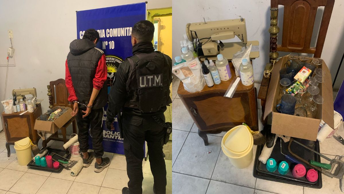 El detenido fue identificado como Coronel, alias “Mudo”, de 24 años y domiciliado en el barrio Vinalar. Al intentar ser identificado por los efectivos, intentó escapar pero fue reducido a pocos metros. Entre los elementos incautados había vajilla, una máquina de coser, perfumes, una mesita de luz, toallas, herramientas y bolsos. Coronel fue trasladado a la Comisaría Comunitaria N.º 10.