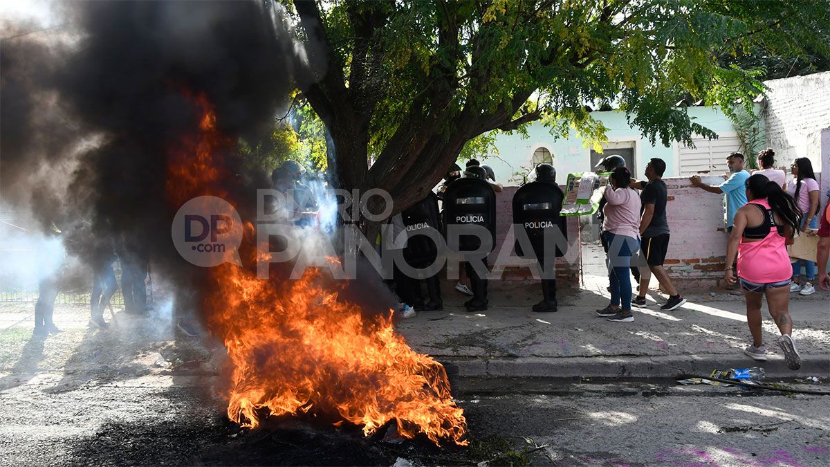 El conflicto escaló rápidamente cuando comenzaron a lanzar objetos contundentes hacia la casa del agresor, además de la quema de neumáticos en las inmediaciones del domicilio. La situación obligó a la intervención de efectivos policiales, quienes implementaron un operativo de contención para restablecer el orden.