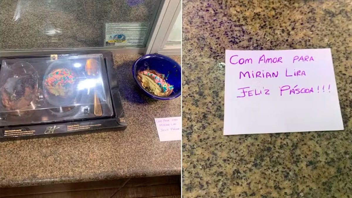 El fatídico huevo de Pascua llegó a la familia por mensajería el miércoles a la noche como un regalo, acompañado de un mensaje que decía: “Con amor, para Mirian Lira. Felices Pascuas”.