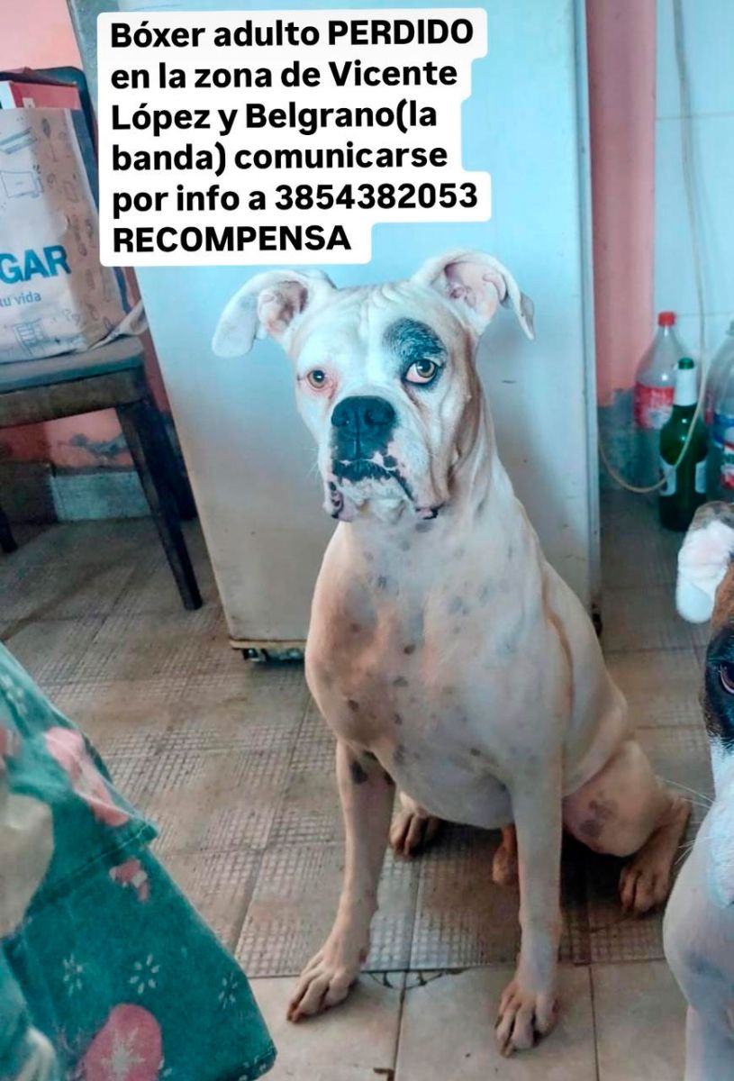 Una familia bandeña busca desesperadamente a su perrito "un Bóxer adulto", que se extravió en la zona de Vicente López y Belgrano de la Ciudad de La Banda.