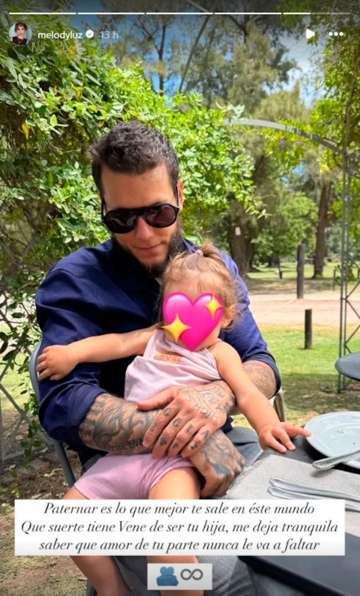 Después de publicar un video de su nena pintando en una plaza, Melody le sacó una foto a Alex con la pequeña y le dedicó un tierno mensaje. “Paternar es lo que mejor te sale en este mundo. Qué suerte tiene Vene de ser tu hija, me deja tranquila saber que amor de tu parte nunca le va a faltar”, escribió acompañando la imagen.