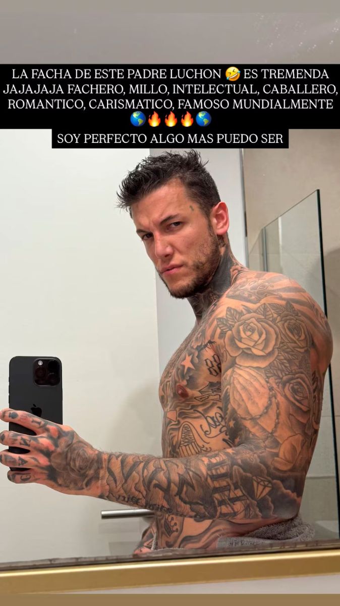 En una nueva etapa de su vida, luego de su tarde junto a su niña, Alex publicó una selfie solo cubierto por una toalla y luciendo su cuerpo tatuado. La postal hot fue acompañada por unos de sus clásicos mensajes en donde bromeó con su flamante soltería y su paternidad. “La facha de este padre luchón es tremenda. Ja, ja, ja. Fachero, ‘millo’, intelectual, caballero, romántico, carismático y famoso mundialmente. Soy perfecto. ¿Algo más puedo ser?“, expresó, junto a la foto que se tomó frente a un espejo.