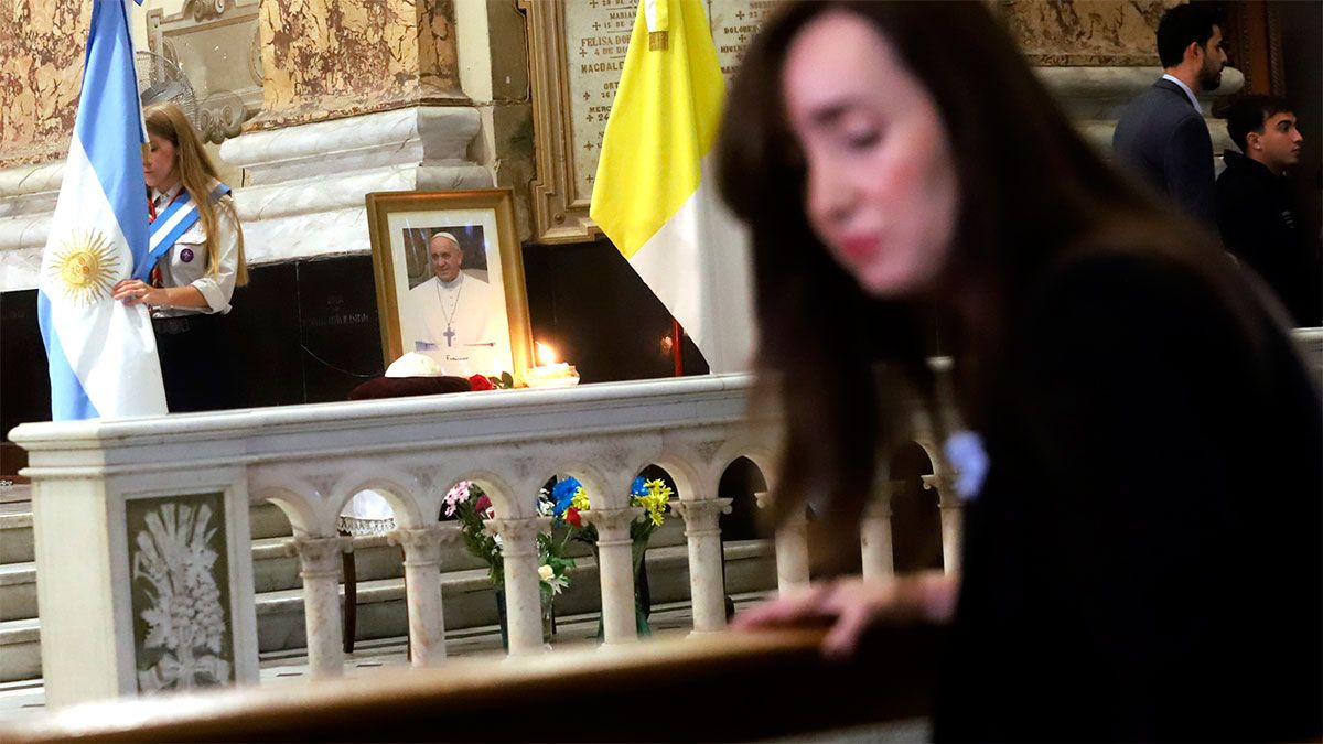 Pasadas las 18.45, el arzobispo de Buenos Aires, Jorge García Cuerva, comenzó a oficiar una misa en homenaje al papa Francisco en la Basílica de San José de Flores, el barrio porteño donde nació y creció Jorge Mario Bergoglio. Del emotivo encuentro participó la vicepresidenta de la Nación, Victoria Villarruel.
