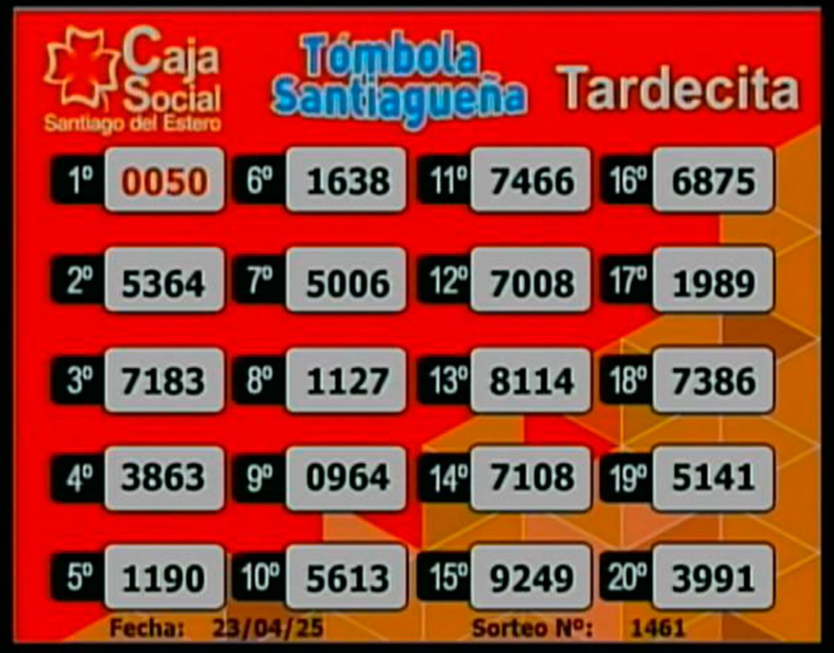 Este miércoles 22 de abril del 2025, como todos los días, se llevó a cabo un nuevo sorteo de la Tómbola Santiagueña.