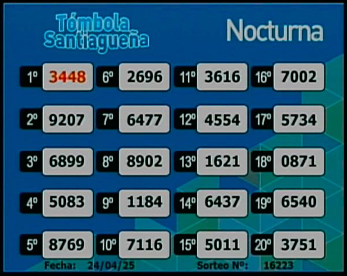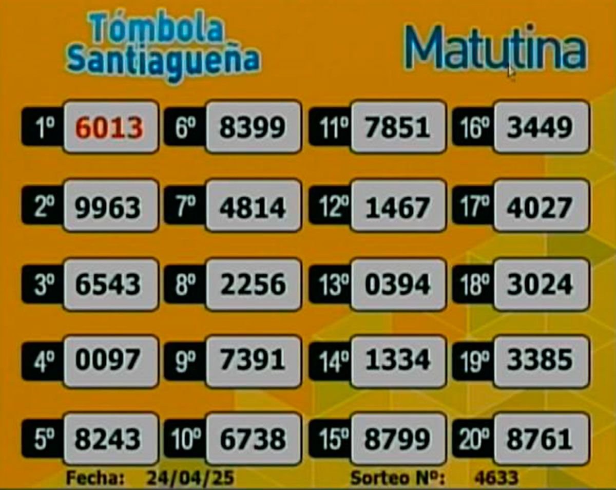 Este jueves 24 de abril del 2025, como todos los días, se llevó a cabo un nuevo sorteo de la Tómbola Santiagueña.