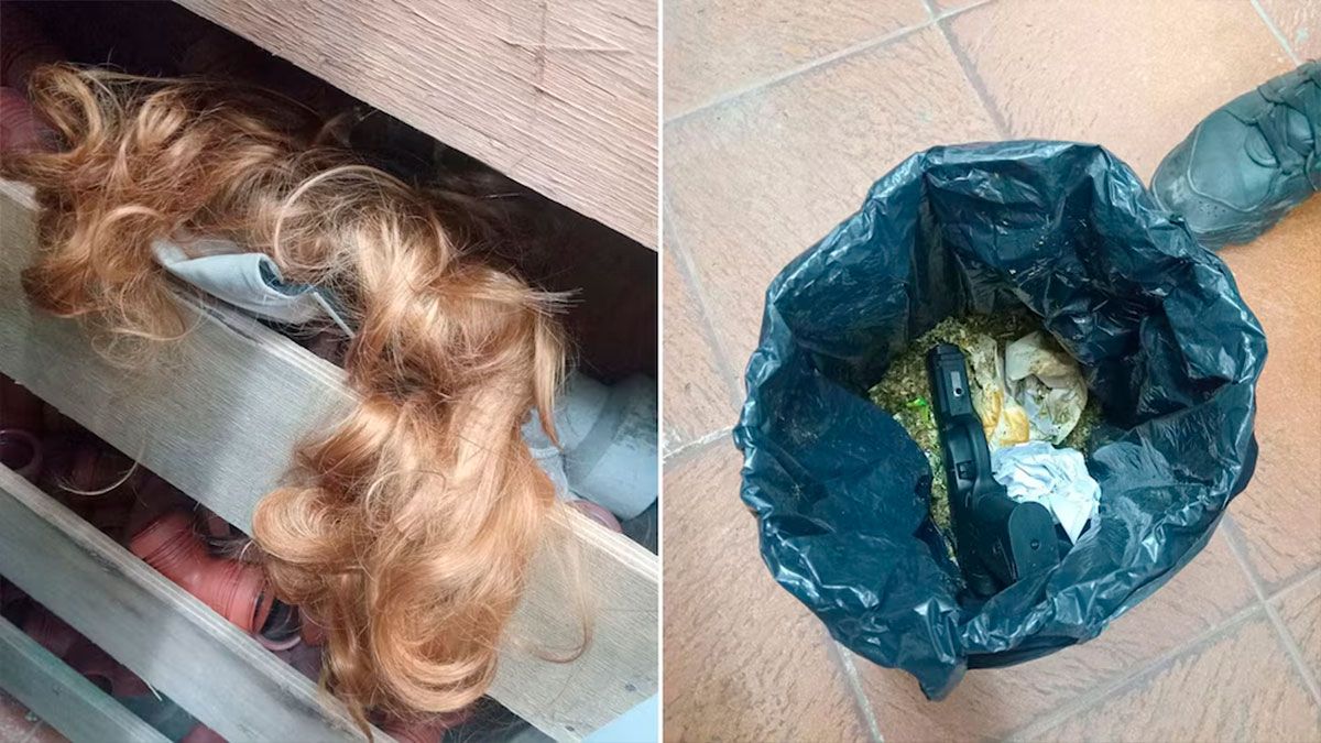 Peluca y arma descartada