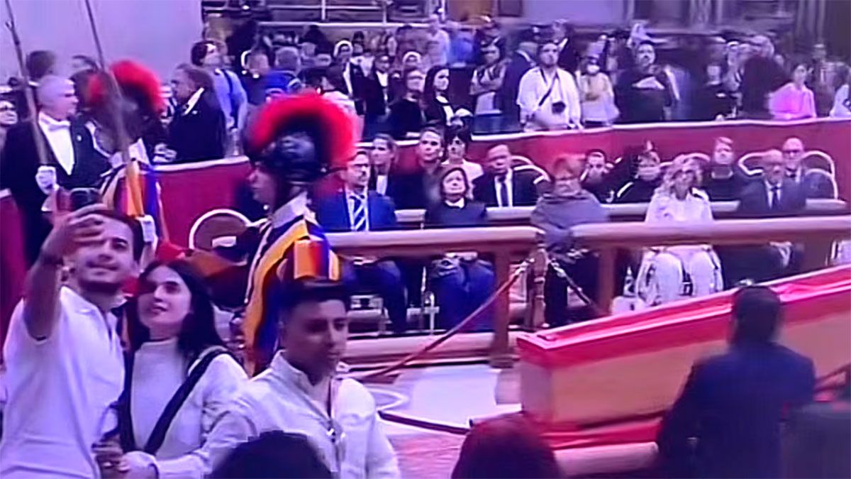No todos mostraron el debido respeto. Varias imágenes se viralizaron en redes sociales de dos mujeres que se sacaron fotos con el cuerpo del Papa. En una de las dos, se incluyó un video, donde una mujer mira para los costados y levanta su celular para capturar el momento. De fondo, se ve al papa Francisco en su ataúd, con un rosario entre sus manos y vestido con su mitra blanca y túnica papal roja, que simboliza la sangre de Cristo.