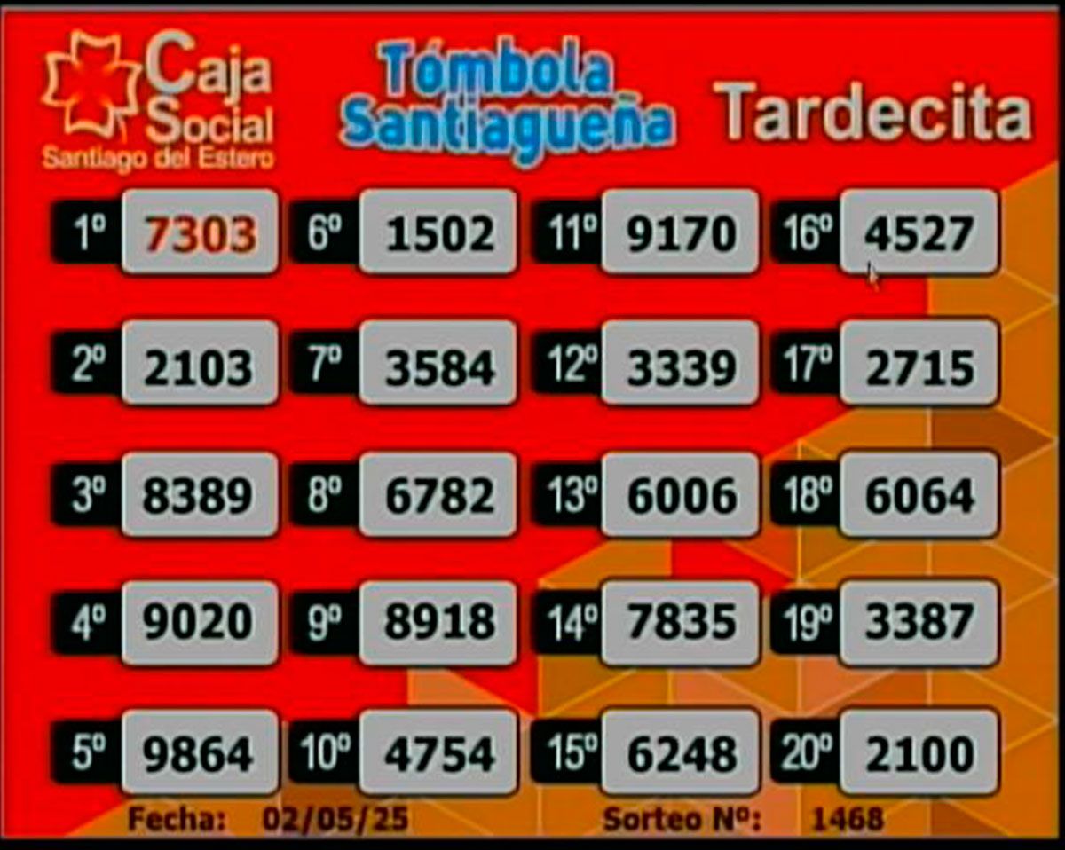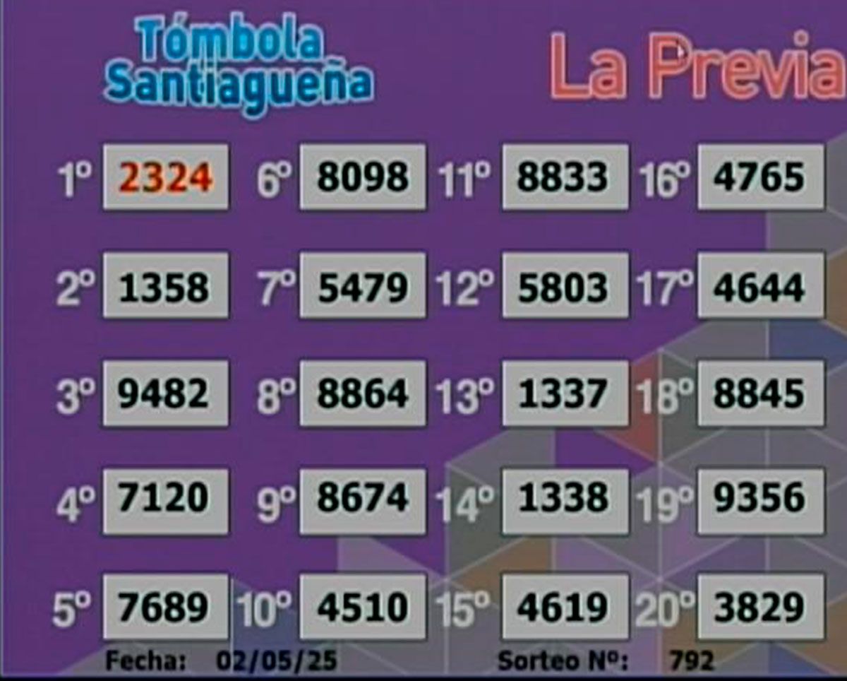 La lista completa de números de la Lotería Santiagueña: