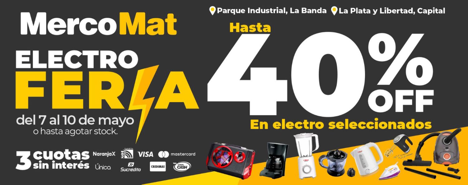 Mercomat, una de las empresas líderes en venta de materiales y artículos para el hogar en la provincia, anunció una nueva edición de su esperada Feria del Electro, que se llevará a cabo del 7 al 10 de mayo.