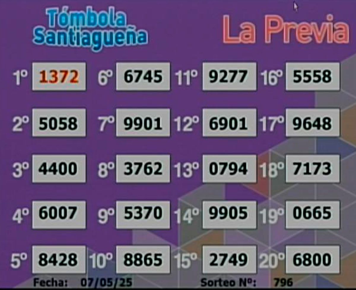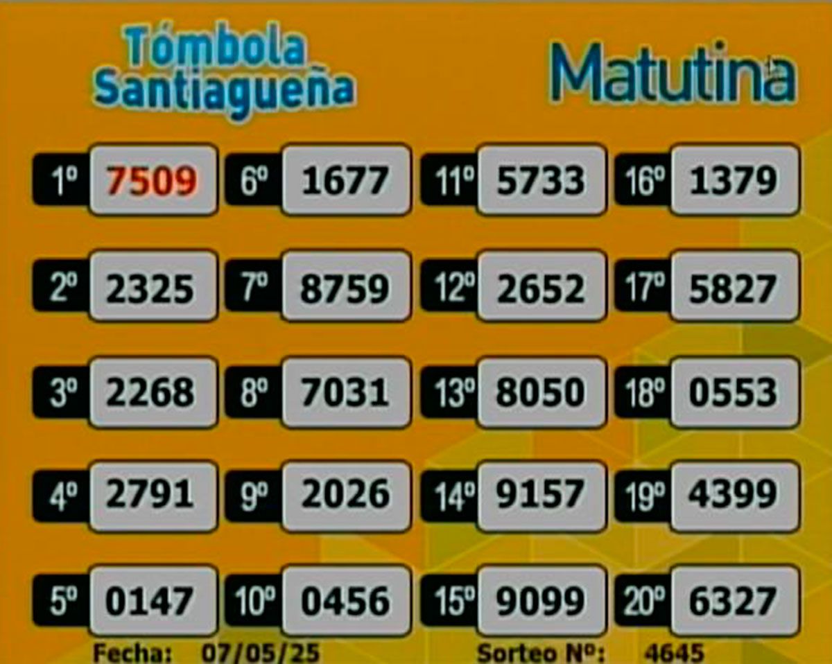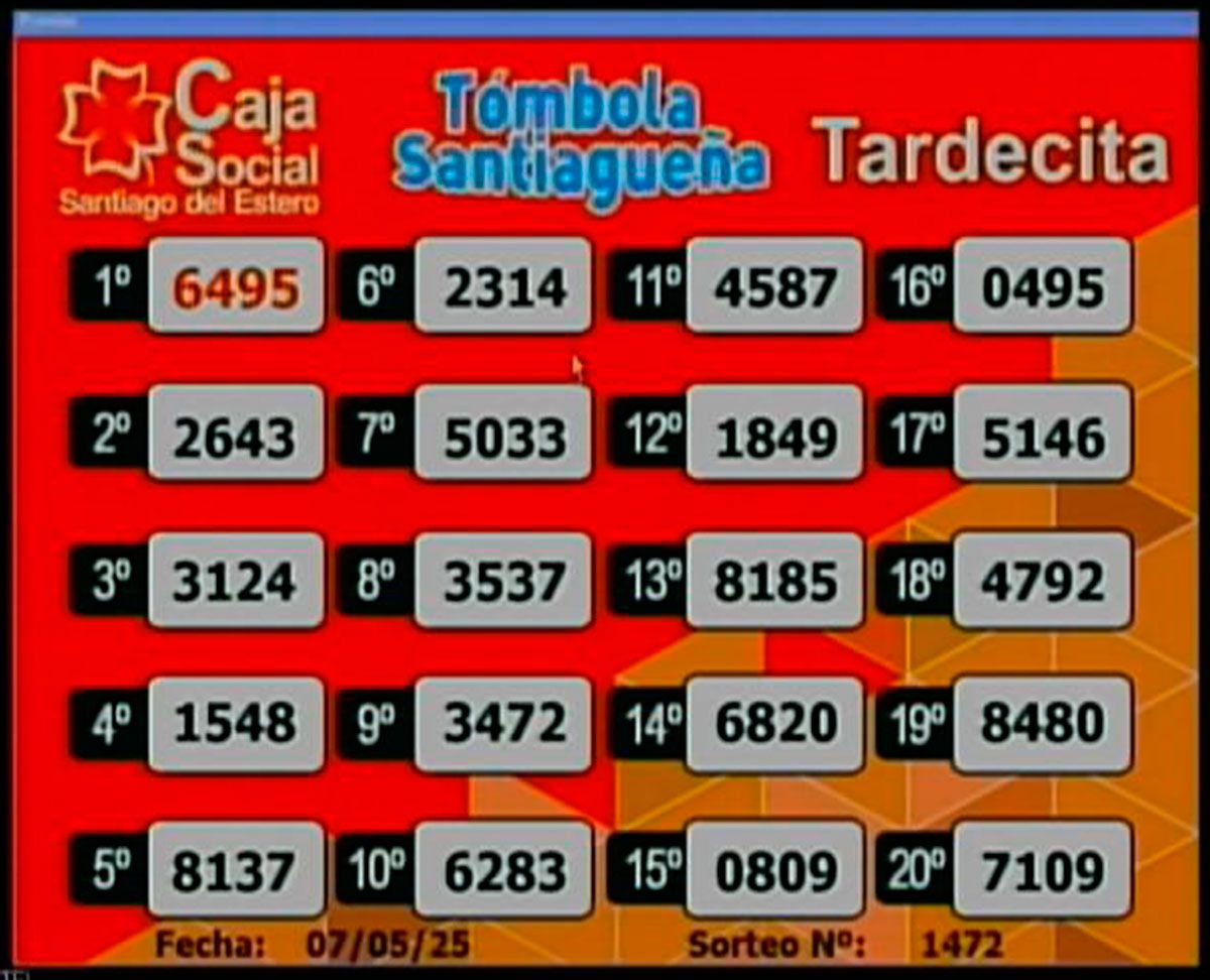 Este miércoles 7 de mayo del 2025, como todos los días, se llevó a cabo un nuevo sorteo de la Tómbola Santiagueña.
