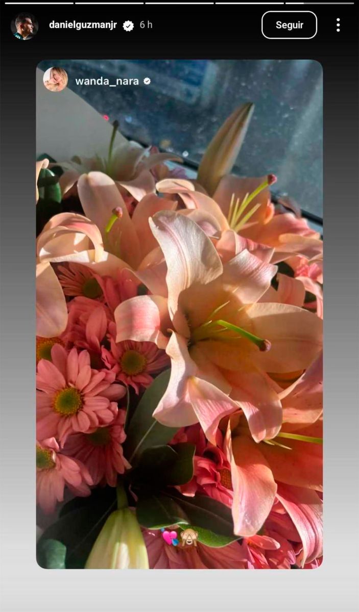 A través de sus historias de Instagram, la ex de Mauro Icardi publicó el ramo de flores que recibió en su departamento. A la postal le sumó un emoji de un corazón con la flecha de Cupido y la carita de un mono tapándose la cara.