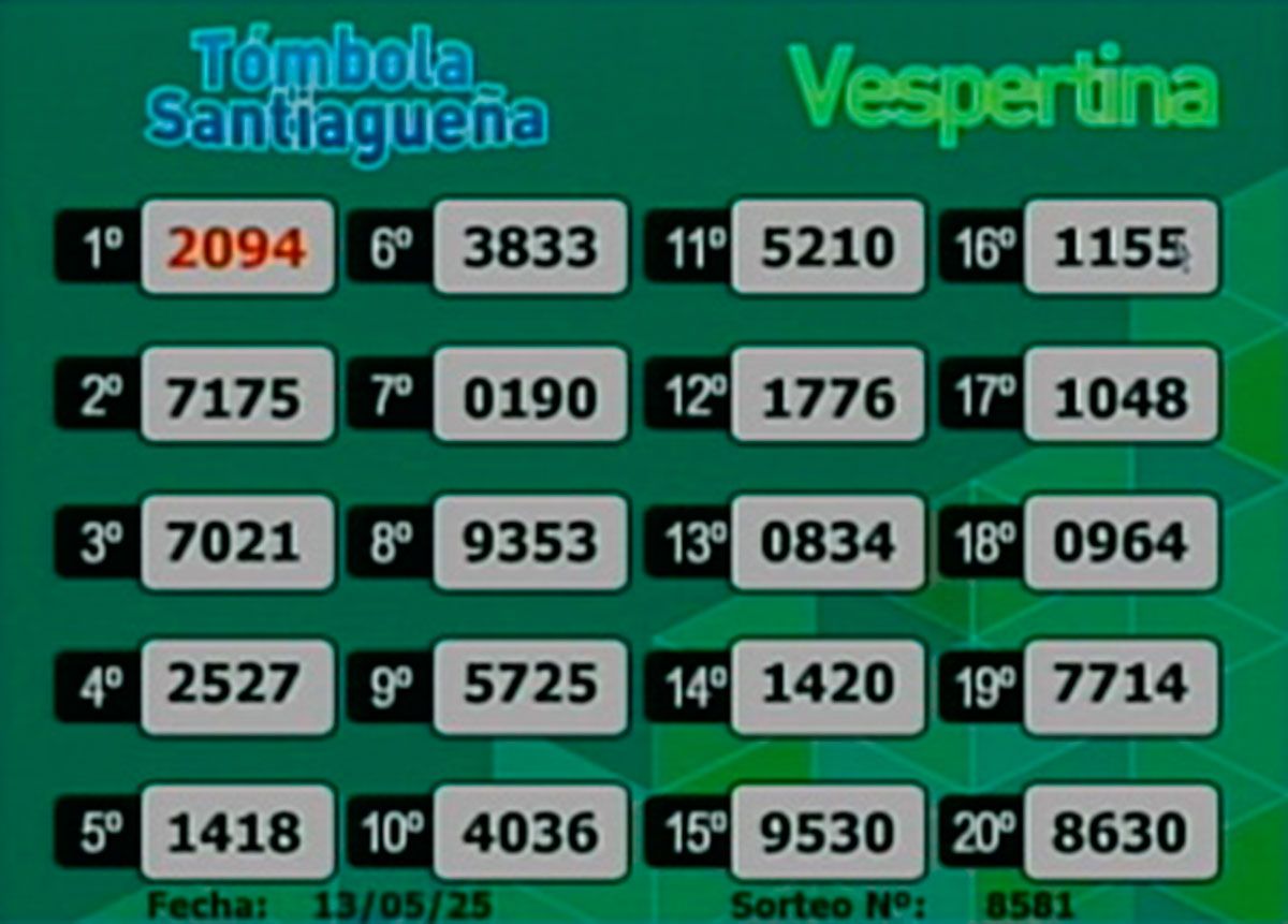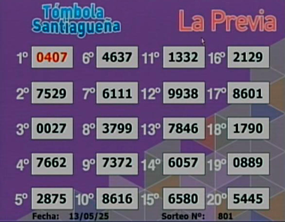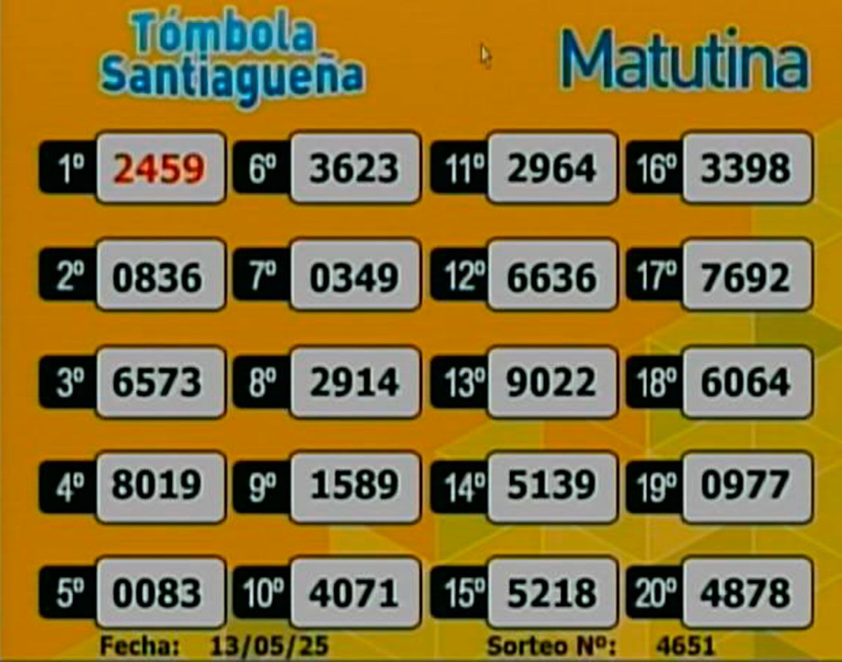 Este martes 13 de mayo del 2025, como todos los días, se llevó a cabo un nuevo sorteo de la Tómbola Santiagueña.