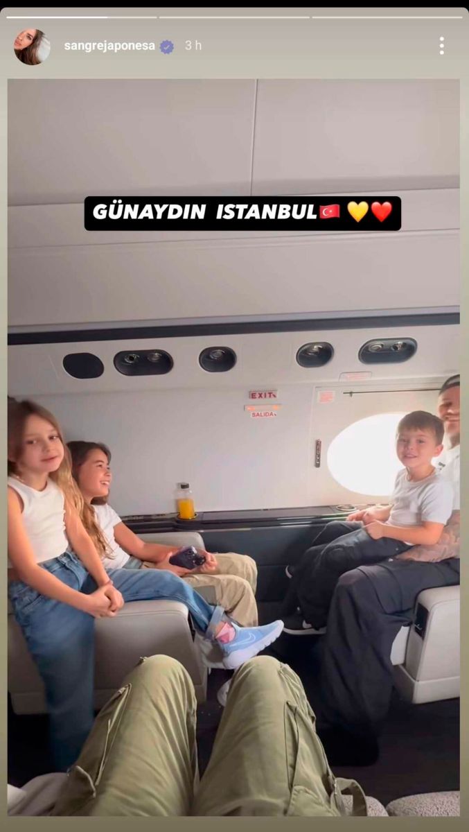 De esa manera, la China mostró la intimidad de su vuelo privado junto a sus hijos para acompañar al delantero en su regreso a Turquía.