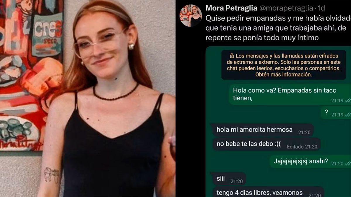 En el posteo que acompañaba la imagen, la usuaria (@morapetraglia) explicó lo que había pasado: “Quise pedir empanadas y me había olvidado que tenía una amiga que trabajaba ahí. De repente, se ponía todo muy íntimo”.