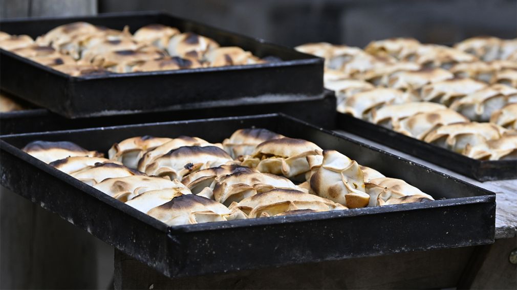 Entre quienes hacen posible esa magia culinaria está Mabel Padilla, una de las mujeres que colaboran religiosamente todos los fines de semana. Junto a sus compañeras Neli y Paula, se dedica a preparar más de 2.000 empanadas, una por una, con carne picada a cuchillo y ese toque casero que solo da la experiencia. “Para mí, una fecha patria como hoy es estar con mis compañeras, compartir con ellas. Nos sentimos muy gratificadas por tantos años trabajando juntas”, nos dice con emoción, mientras repulga con maestría otra tanda lista para el horno.