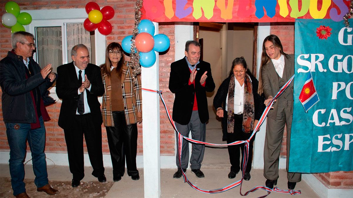 El corte de cintas desde donde se oficializó la habilitación y entrega de las viviendas sociales construidas por la Comisión Municipal de Villa Figueroa con fondos del Gobierno de la provincia, se efectuó en el domicilio de María Rosa Farías, en el paraje La Candelaria.