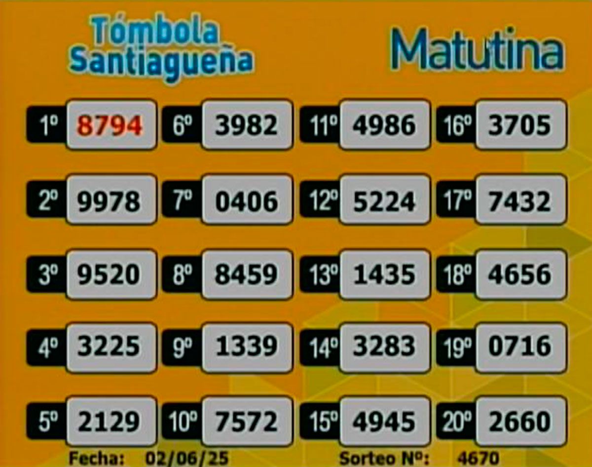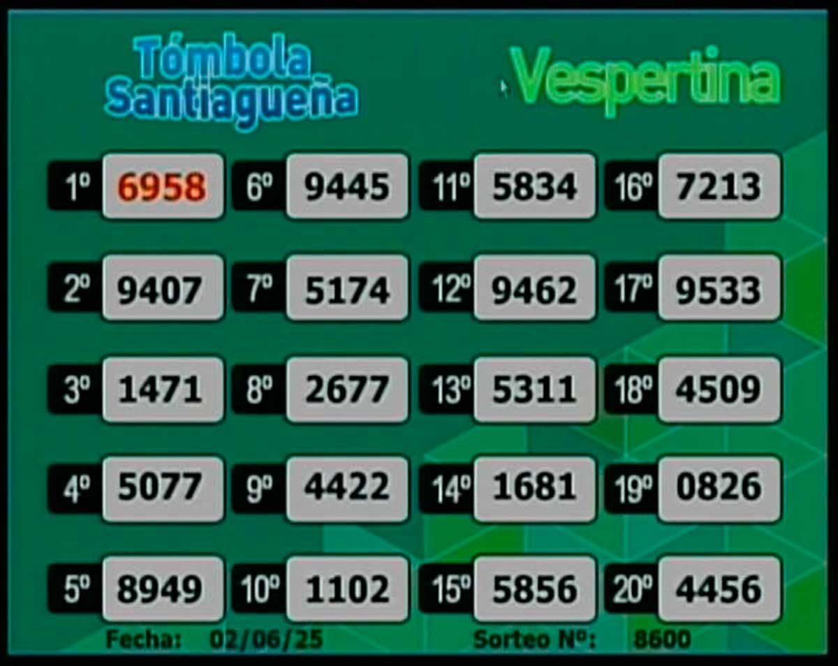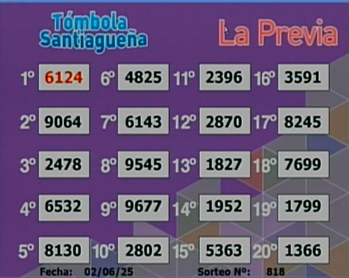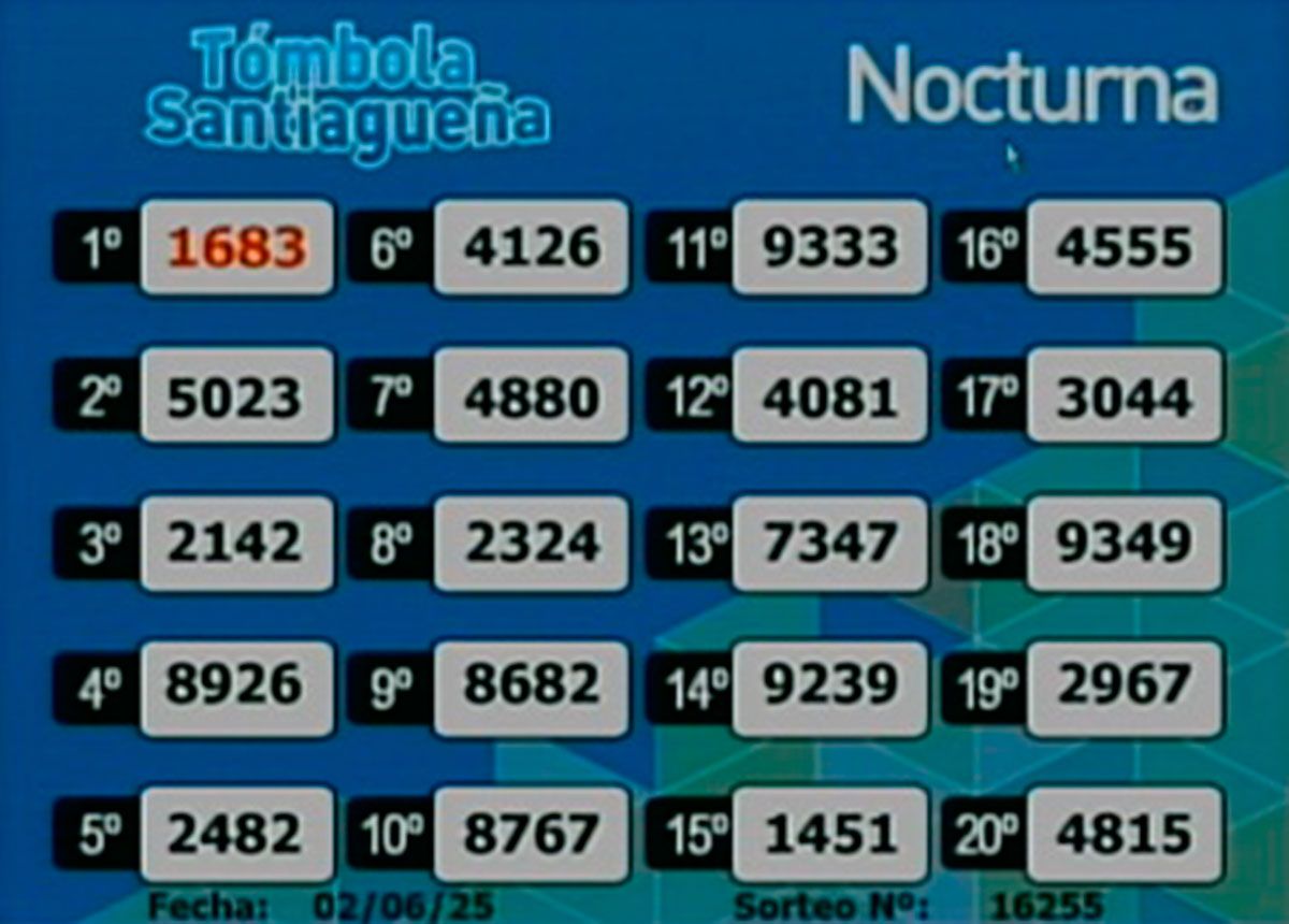 Este lunes 2 de junio del 2025, como todos los días, se llevó a cabo un nuevo sorteo de la Tómbola Santiagueña.