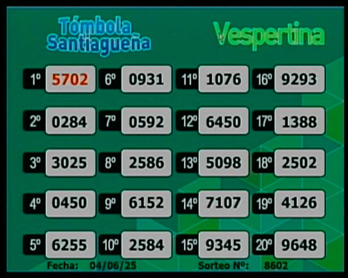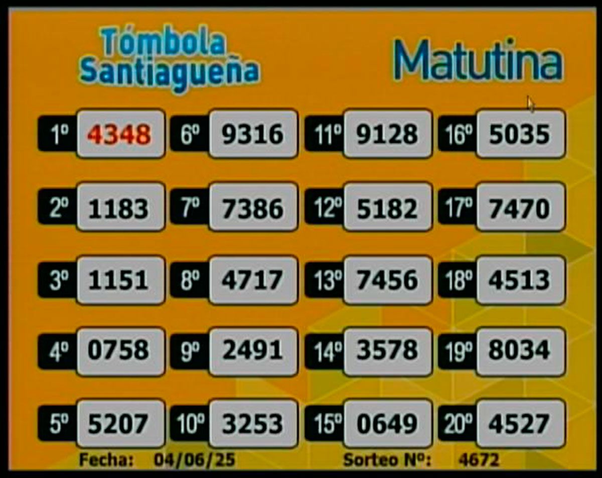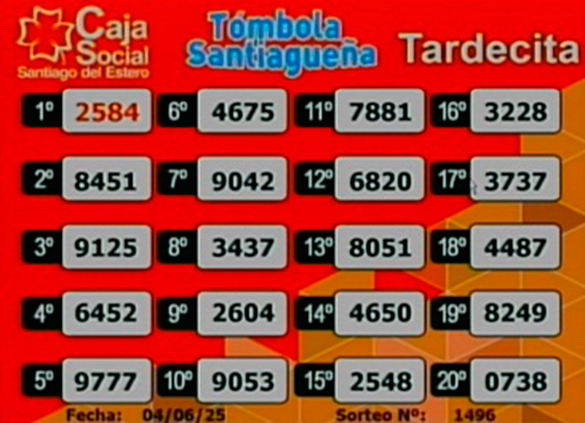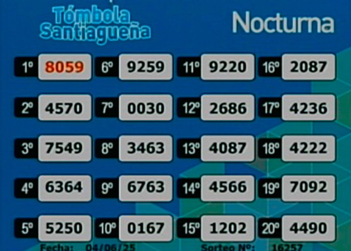 Este miércoles 4 de junio de 2025, como todos los días, se llevó a cabo un nuevo sorteo de la Tómbola Santiagueña.