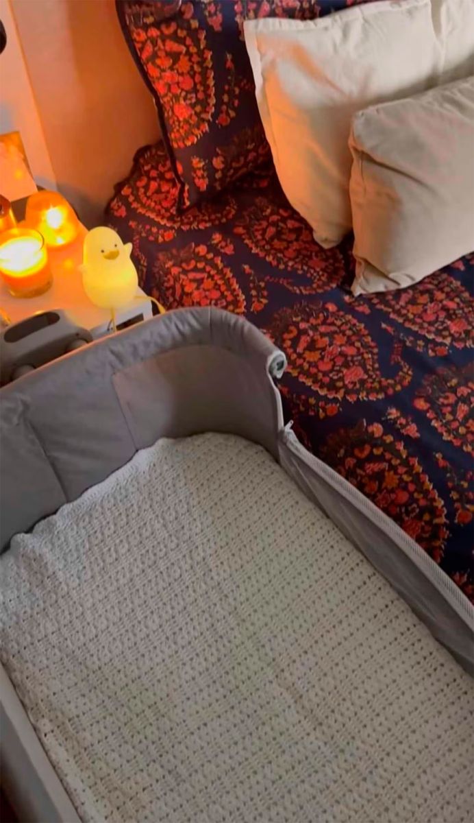 La cantante compartió un video con la decoración que preparó junto a Matías Palleiro, pero en los últimos segundos de la grabación se vio una cuna colecho junto a su cama matrimonial.