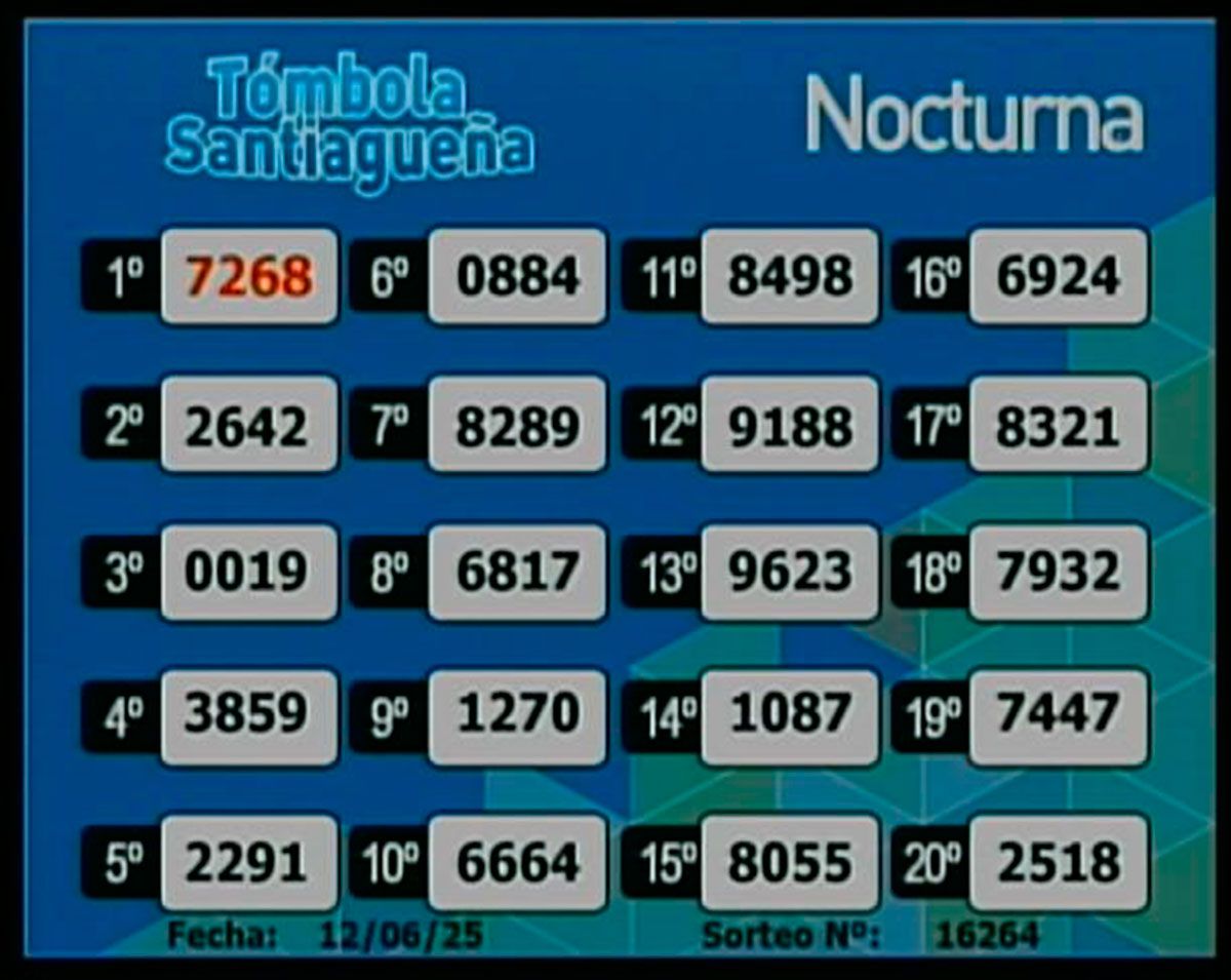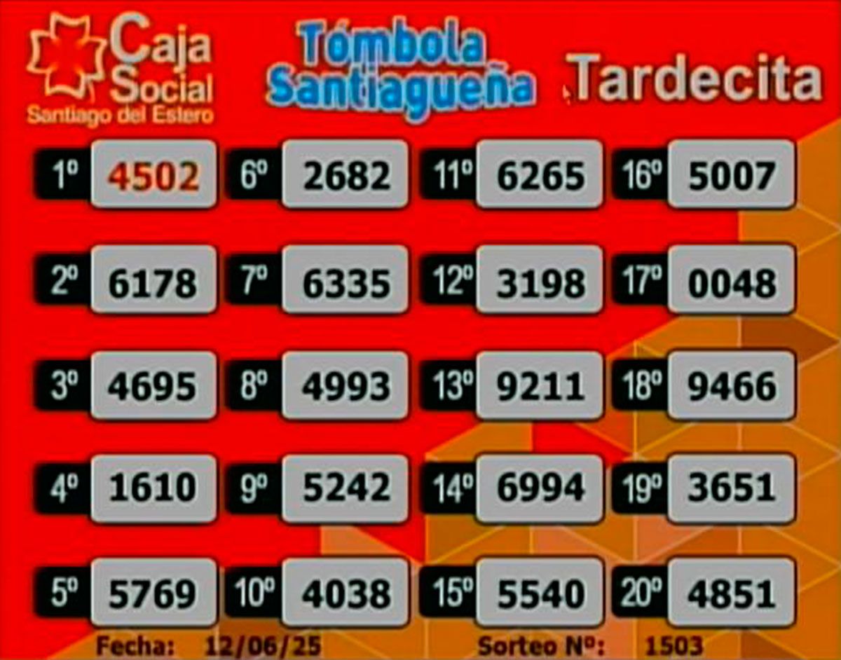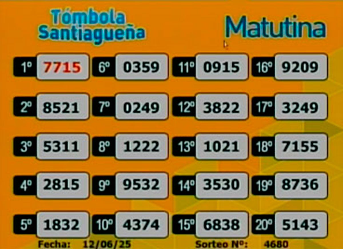 Este jueves 12 de junio de 2025, como todos los días, se llevó a cabo un nuevo sorteo de la Tómbola Santiagueña.