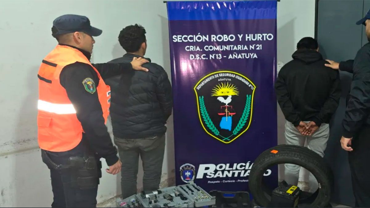 La Policía actuó con rapidez y logró arrestar a los sospechosos en la vía pública. Secuestraron una moto y todos los objetos sustraídos, entre ellos baterías, cubiertas y herramientas.
