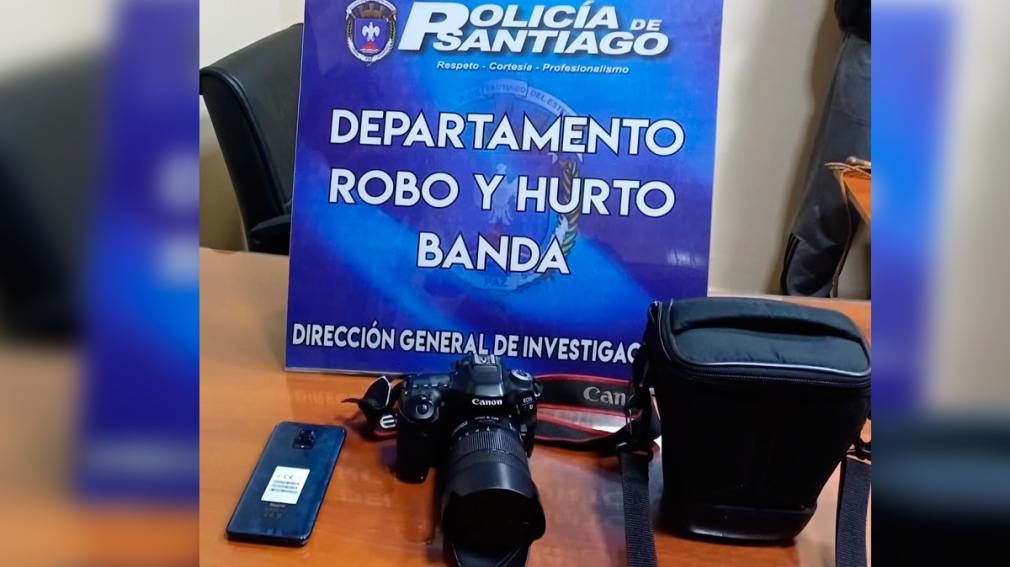 El material recuperado incluye una cámara Canon Rebel XSi, un lente de 135 mm y un celular entre otros bienes.