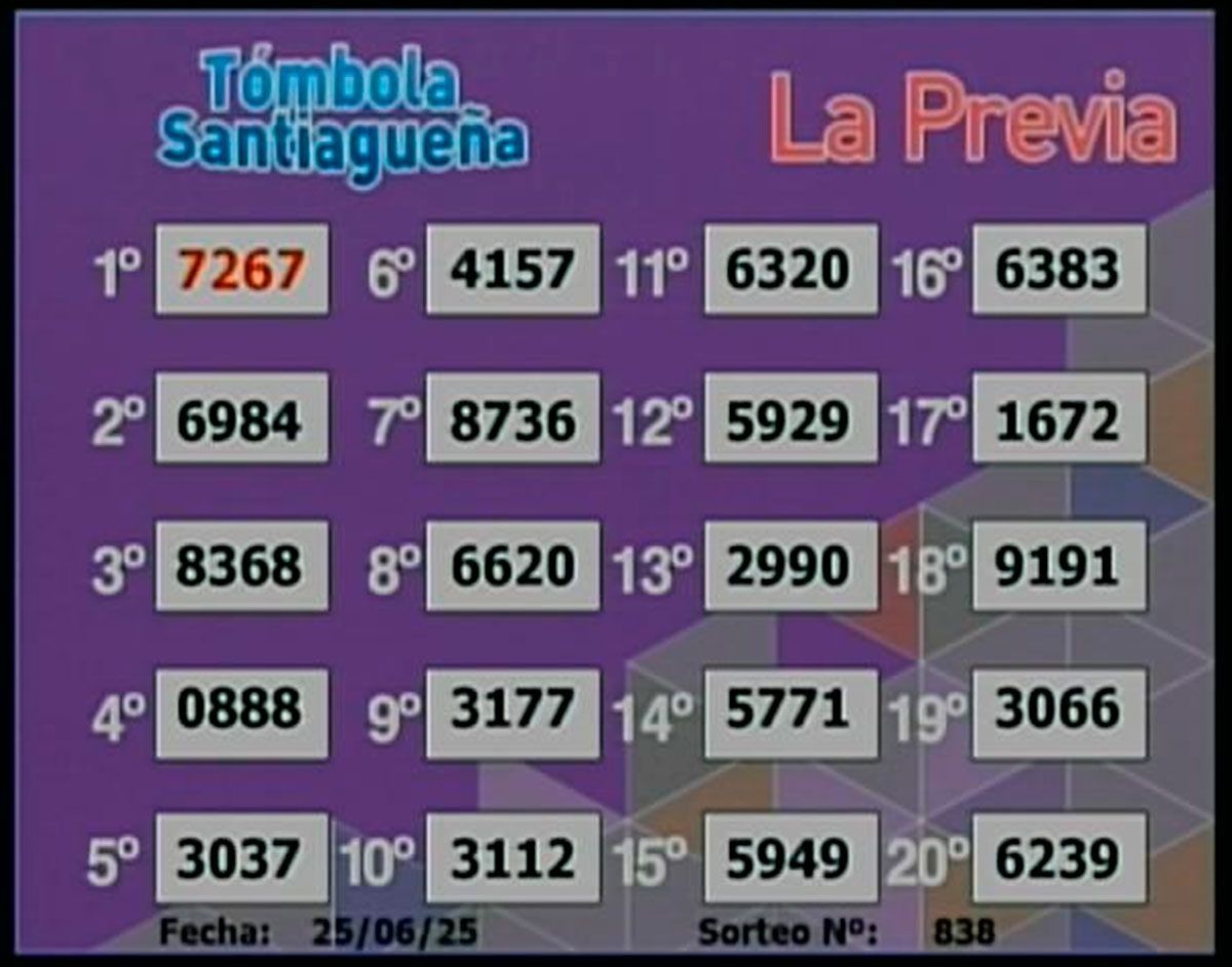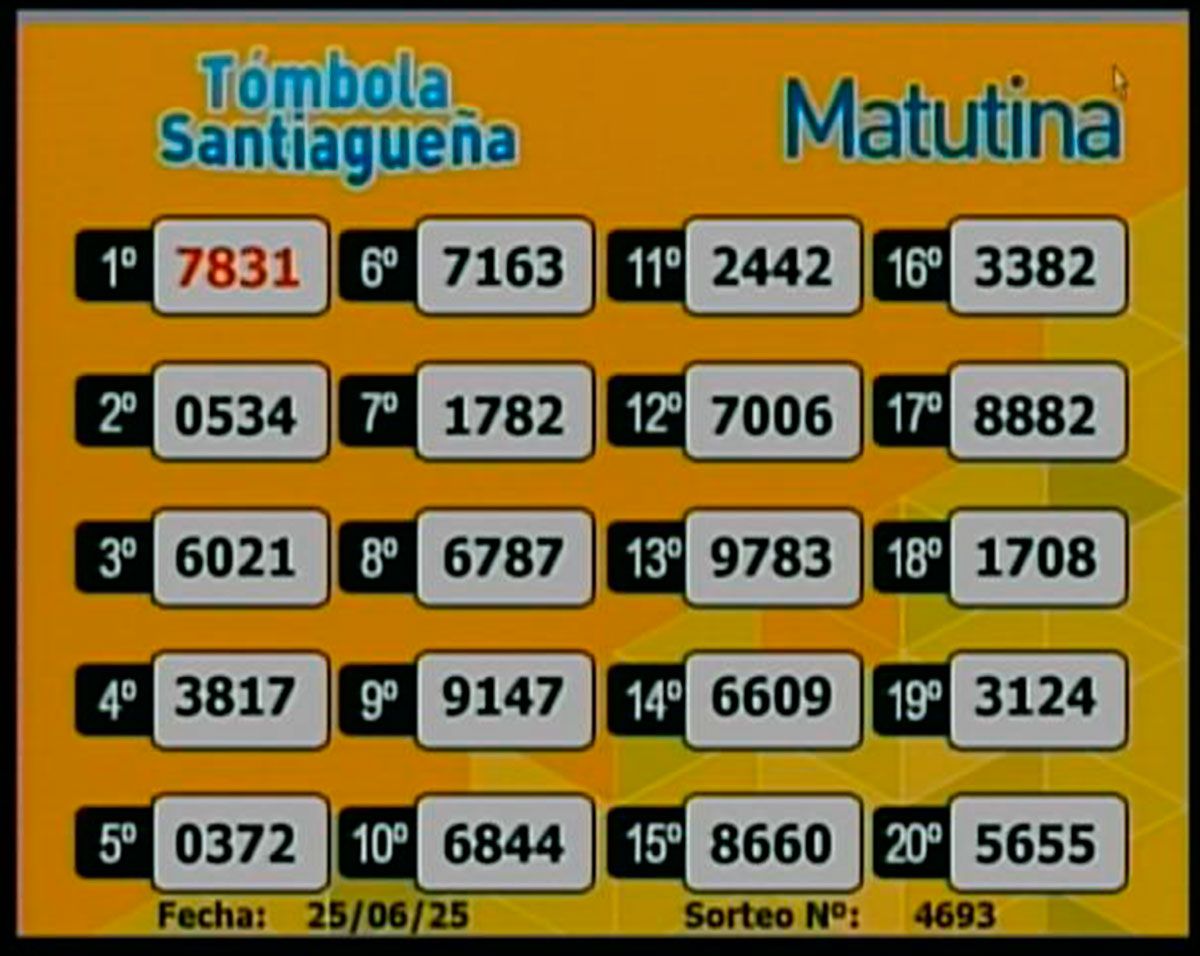Como todos los días, este miércoles 25 de junio de 2025, se llevó a cabo un nuevo sorteo de la Tómbola Santiagueña.