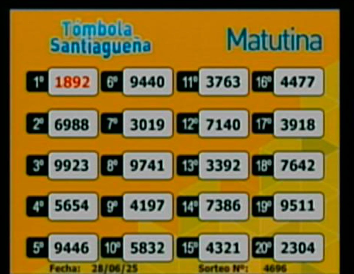 Aquí, todos los números del sorteo Matutino de la Tómbola de Santiago del Estero: