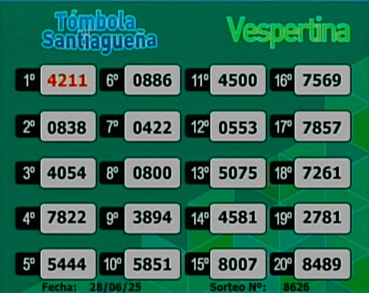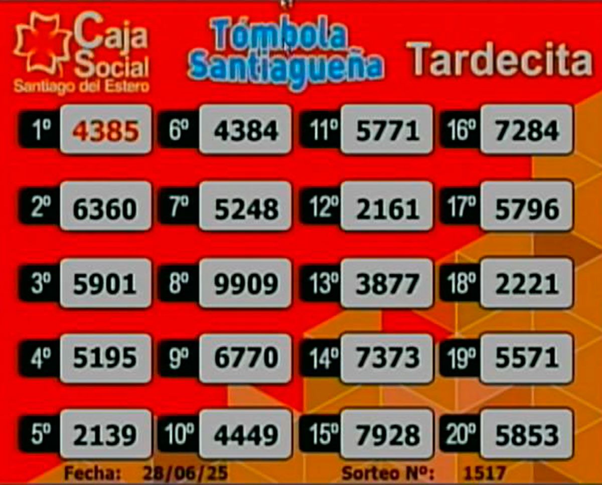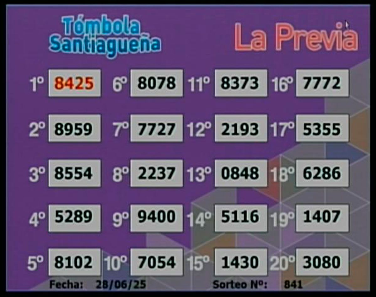 Como todos los días, este sábado 28 de junio de 2025, se llevó a cabo un nuevo sorteo de la Tómbola Santiagueña.