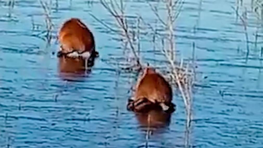 La imagen de los carpinchos patinando sobre la laguna congelada recorrió rápidamente las redes sociales.