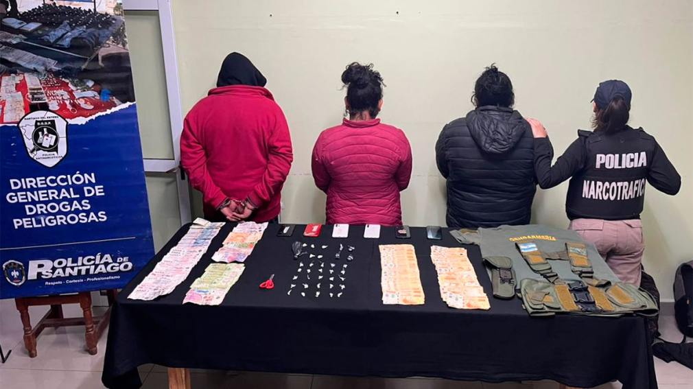 En el lugar fueron detenidas tres personas, identificadas como Lorena Carolina Gutiérrez Gerez, de 31 años; Yesica Noelia Farías, de 34 años; y Juan Manuel Castaño, de 36 años, todos con domicilio en el mencionado barrio.