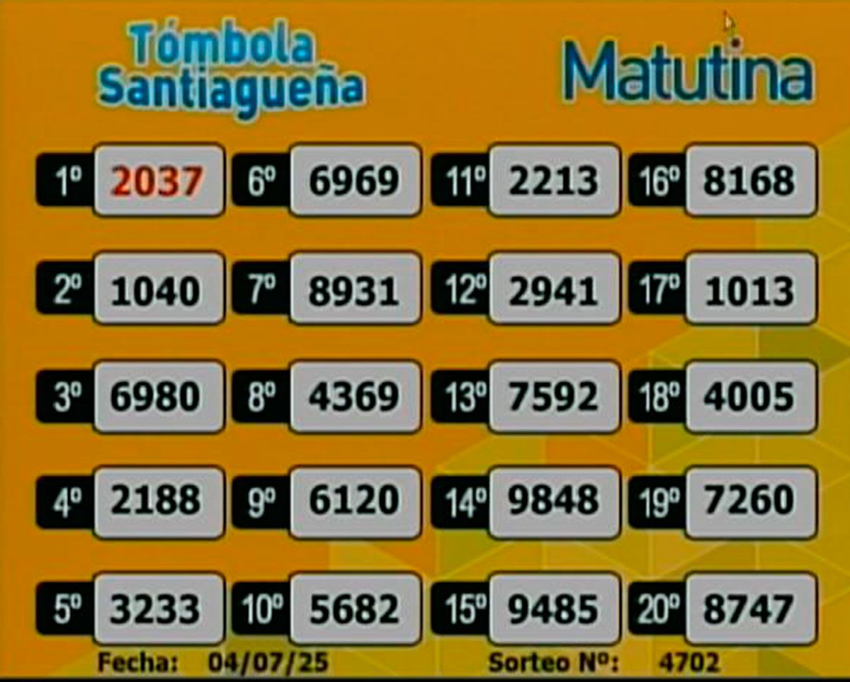 Como todos los días, este viernes 4 de julio de 2025, se llevó a cabo un nuevo sorteo de la Tómbola Santiagueña.