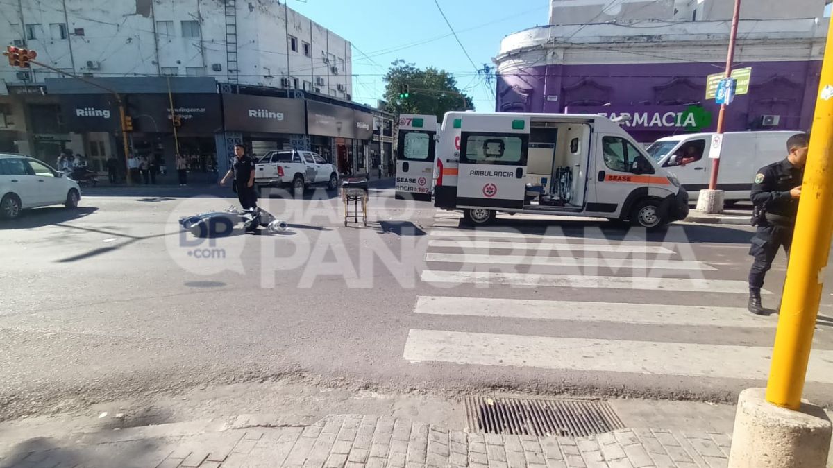 Un accidente de tránsito se produjo este martes en horas de la siesta en la intersección de las avenidas Belgrano y Libertad, cuando una ambulancia que circulaba con balizas y sirena colisionó con una motocicleta.