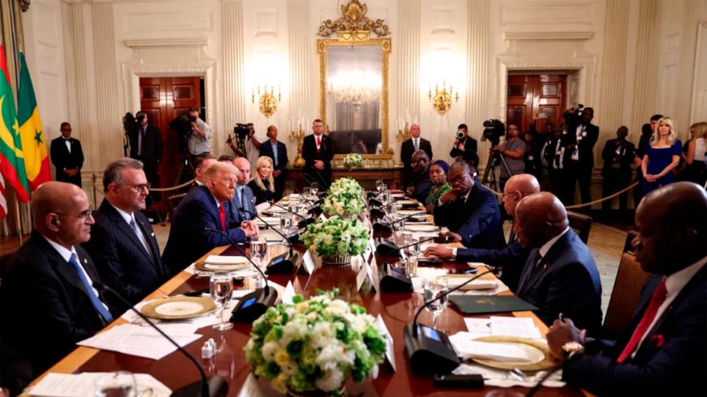 Trump, sin reparar en la incomodidad, insistió con el tema: "Pues es muy interesante. Es un inglés hermoso. Hay personas en esta mesa que no hablan ni de cerca tan bien", agregó, rodeado de presidentes de otras naciones de África Occidental, en su mayoría francófonas.
