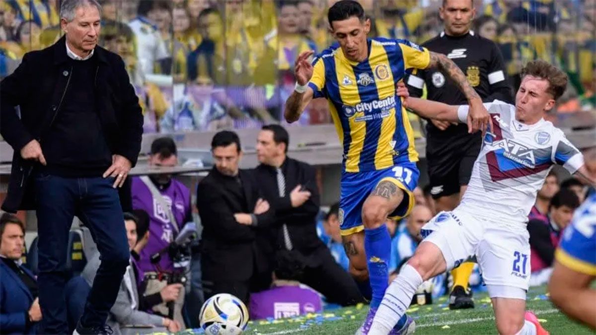 En el primer tiempo, Central fue levemente superior, pero chocó con las buenas respuestas del arquero Franco Petroli, que tapó una clara a Di María y sostuvo el cero. El penal llegó tras un tiro de esquina ejecutado por Jaminton Campaz: Alejo Véliz se dejó caer ante la marca de Barrea y Pablo Dóvalo sancionó la falta que Di María cambió por gol con un remate cruzado al palo izquierdo.