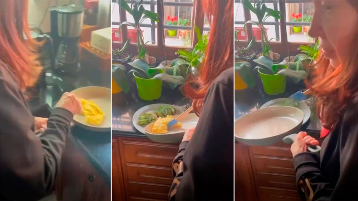 En las imágenes, se puede ver a la exmandataria cocinando huevos revueltos con palta para el desayuno, mientras mantiene una charla informal con su hijo sobre alimentación y política, en un tono distendido pero cargado de mensajes.
