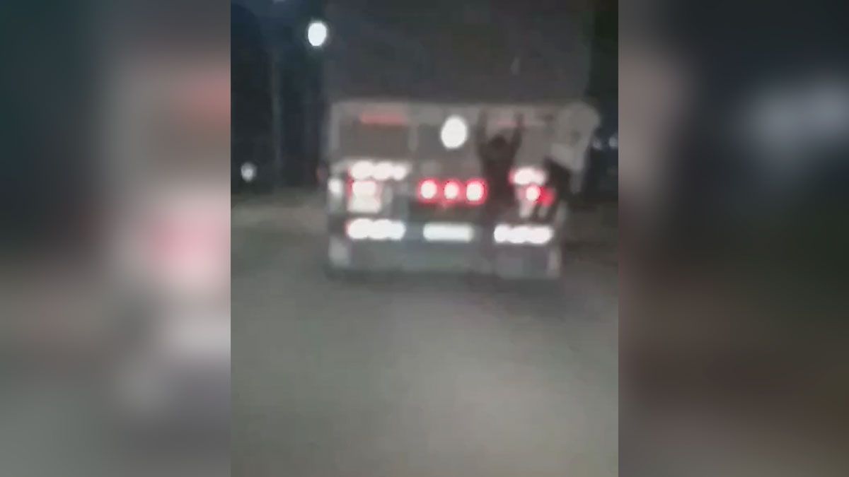 Mientras el transporte circulaba a baja velocidad en una zona de lomadas, los menores se subieron a la parte trasera del mismo.