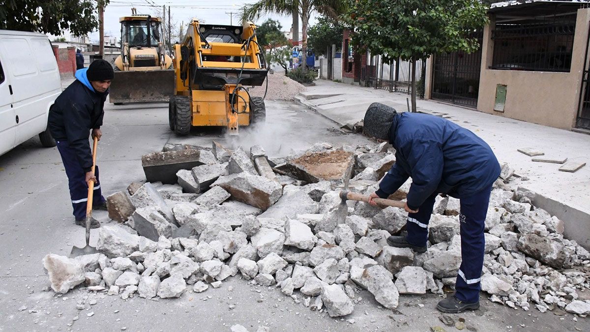 La Dirección de Obras Públicas de la Capital realizó trabajos de reparación con hormigón en la calle Luis Lescano del barrio Borges, en el tramo comprendido entre las calles 109 y 110.