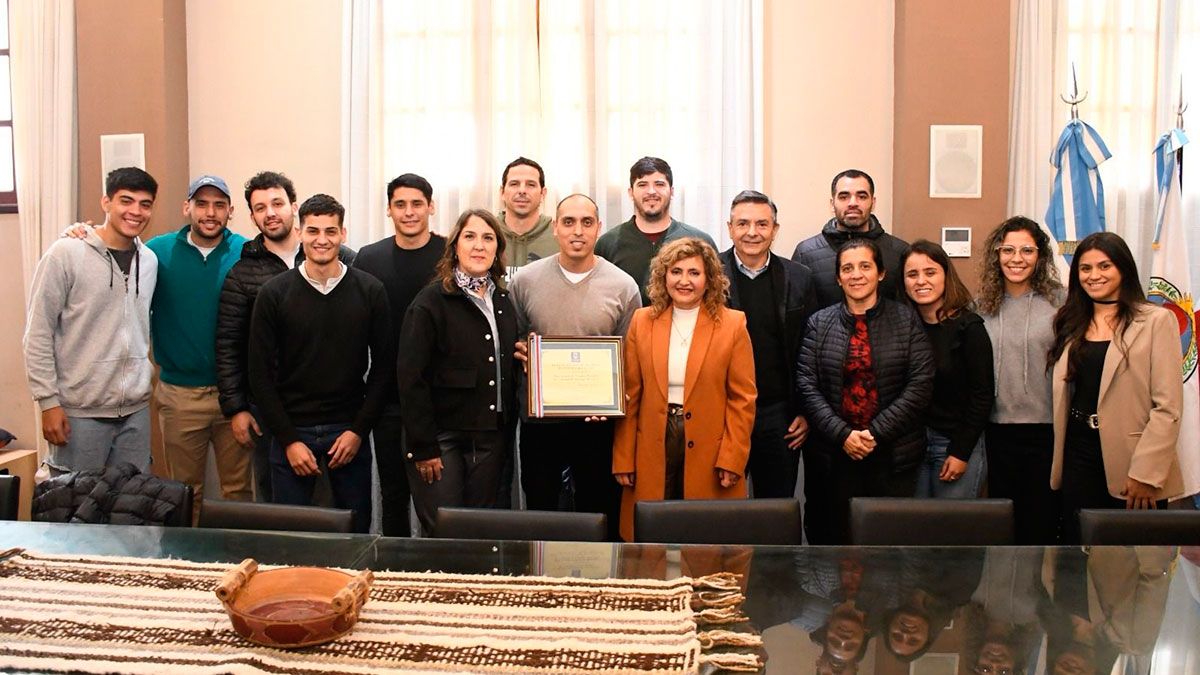 En nombre de los vecinos de la ciudad, la jefa comunal entregó una placa de reconocimiento al destacado equipo, que fue recibida por la presidenta de la Federación Santiagueña de Cestoball, Marcela Gigli.