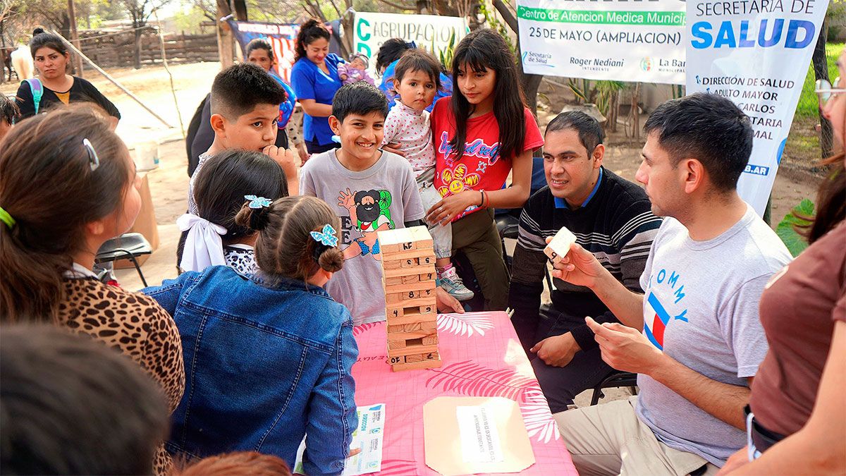 Esta actividad se realizó el viernes por la tarde, en el barrio El Tabique, dónde participaron niños que integran el equipo Juvenil del Tabique y familias de la zona que tuvieron acceso a servicios gratuitos de vacunación, control de peso y talla de menores, entre otros.
