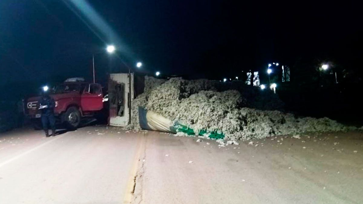 La abundante carga de algodón y el propio acoplado quedaron atravesados en la carretera, imposibilitando el normal tránsito por la zona, por lo que personal policial de la Comisaría 19 de Herrera y Sub Comisaría de Villa Mailín trabajaron para controlar la circulación hasta que el vehículo fuera removido.