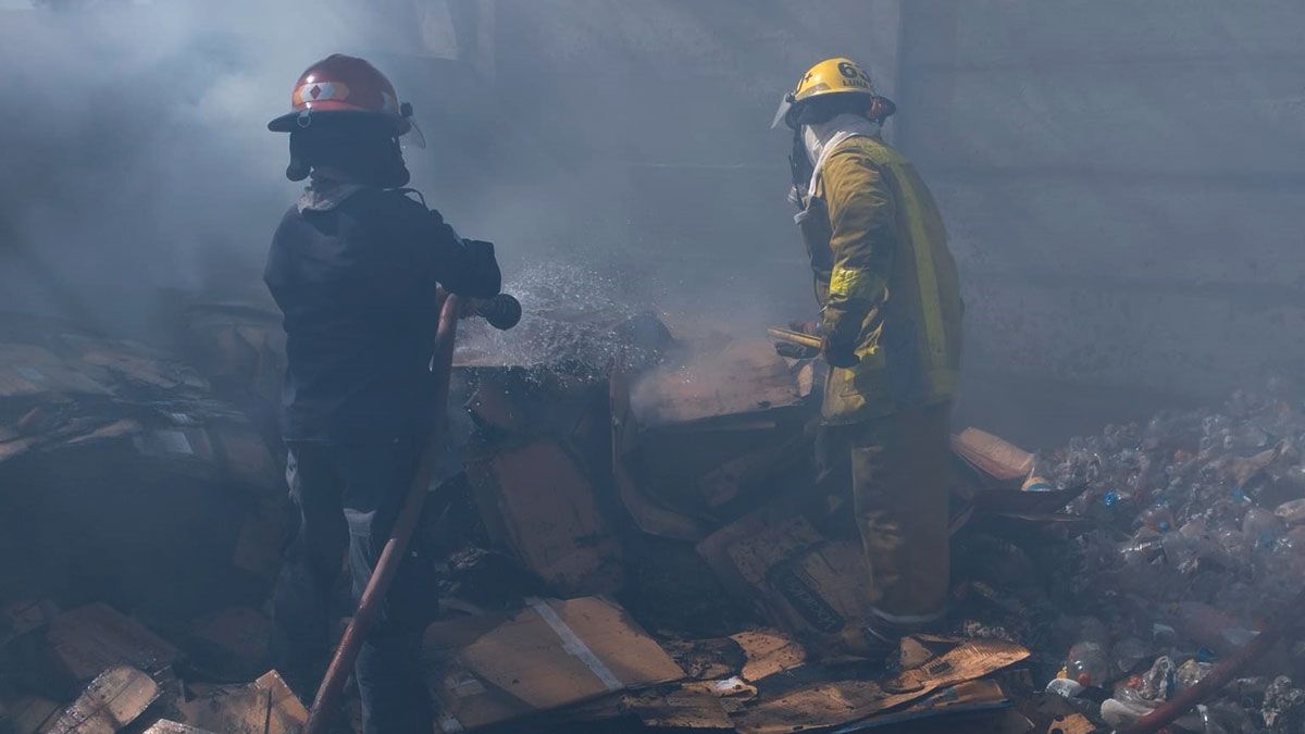 Según informaron las autoridades, las llamas se originaron sobre montículos de cartón acumulados en el lugar, lo que provocó una rápida propagación del fuego.
