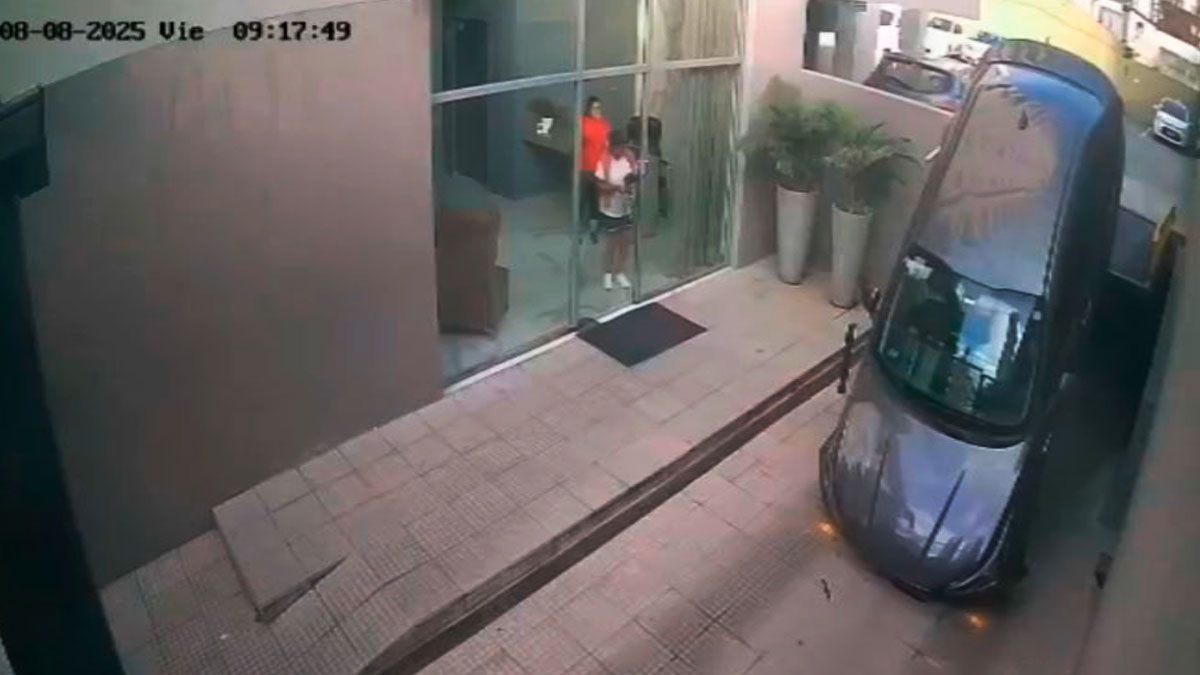 El hecho ocurrió el viernes por la mañana, alrededor de las 9:15, y fue captado por una cámara de seguridad. En el video se observa cómo la conductora avanza hacia la salida sin notar el espacio libre frente a ella.