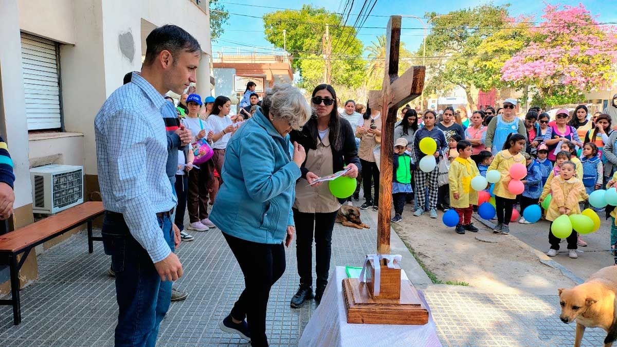La cruz del jubileo llegó a la ciudad de Fernández este miércoles bajo el lema "Peregrinos de esperanza vivamos con alegría la visita de la cruz del jubileo 2025", iniciando su recorrido por el Colegio San Francisco de Asís, donde la comunidad vivió un momento único de fe, encuentro y misión.
