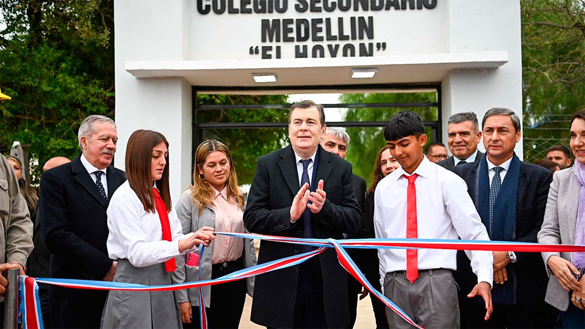Luego se trasladó al anexo del Colegio Secundario Medellín, donde fue recibido por su rector, Marcelo Benavidez, con quien las autoridades hicieron un recorrido por las instalaciones totalmente equipadas.